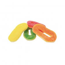 Aros pica con azúcar de sabores surtidos: limón, fresa, manzana y naranja. El producto es sin gluten.
