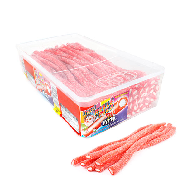 Deliciosos palitos de regaliz sabor fresa, rellenos de nata y cubiertos con una capa de pica pica.