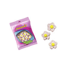 Bolsa de 100 unidades de nubes de Bulgari. Azucaradas y esponjosas con forma de flor. De color rosa y amarillo. Su sabor a nata hará que no puedas parar de comerlas. ¡No dejes pasar la oportunidad de añadir este toque dulce y coqueto a tu mesa dulce!